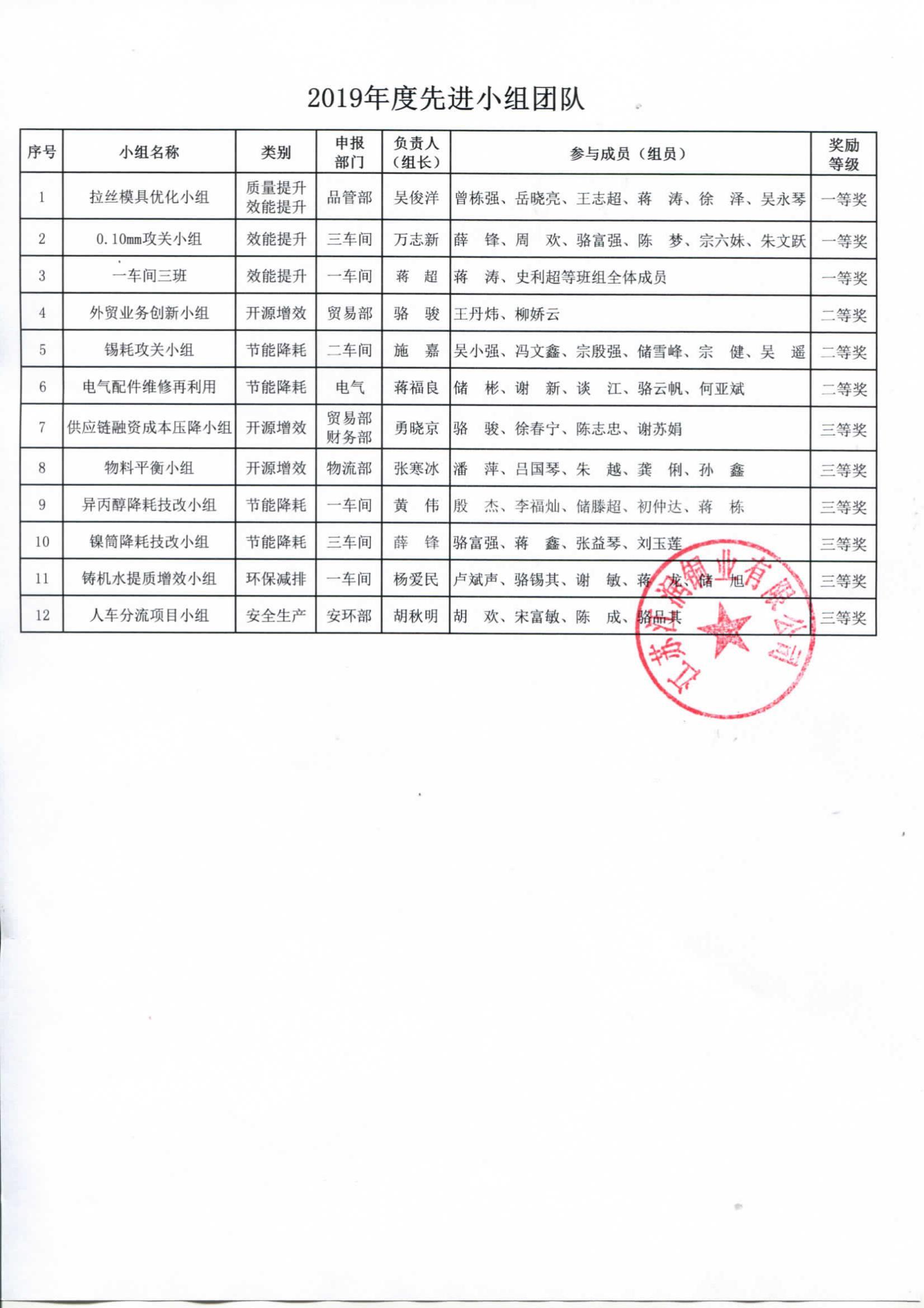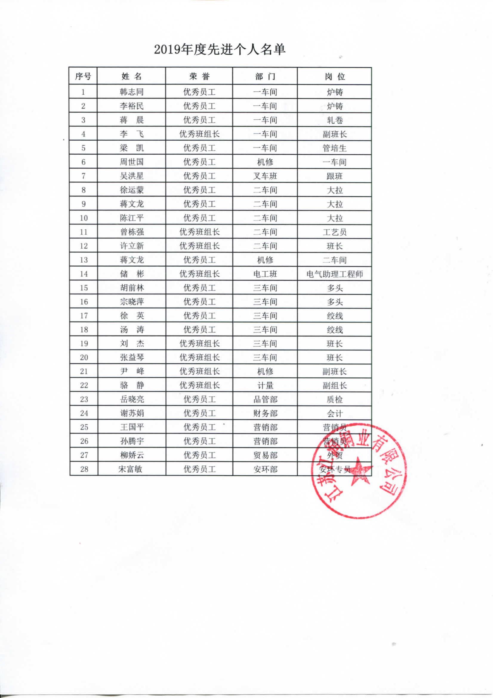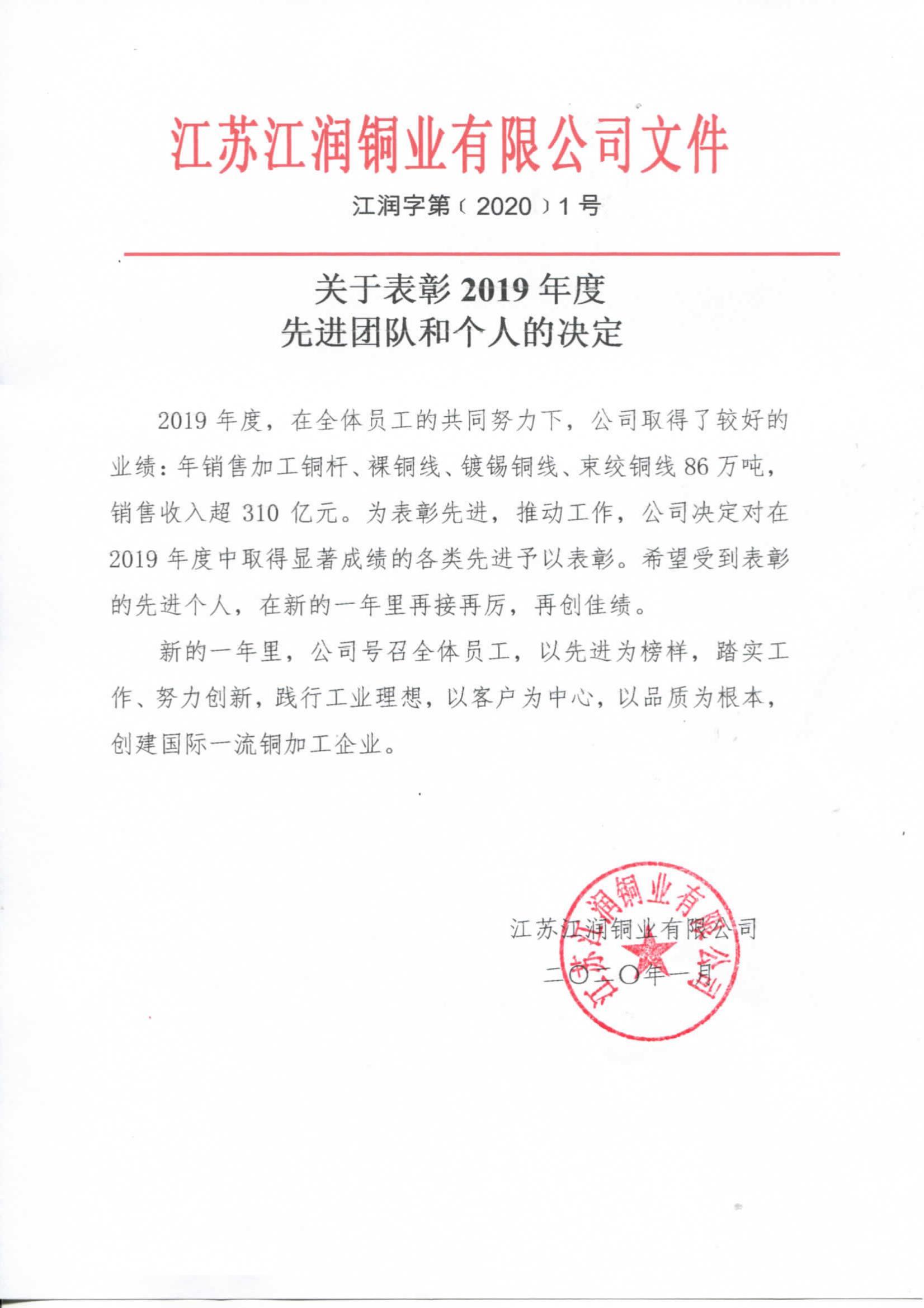 2019年度江潤(rùn)銅業(yè)先進(jìn)表彰